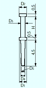 | Model No. | D1 (phi mm) | D2 (phi mm) | D3 (phi mm) | D4 (phi mm) | D5 (phi mm) | H (mm) | Recommended through-hole diameter (phi mm) |